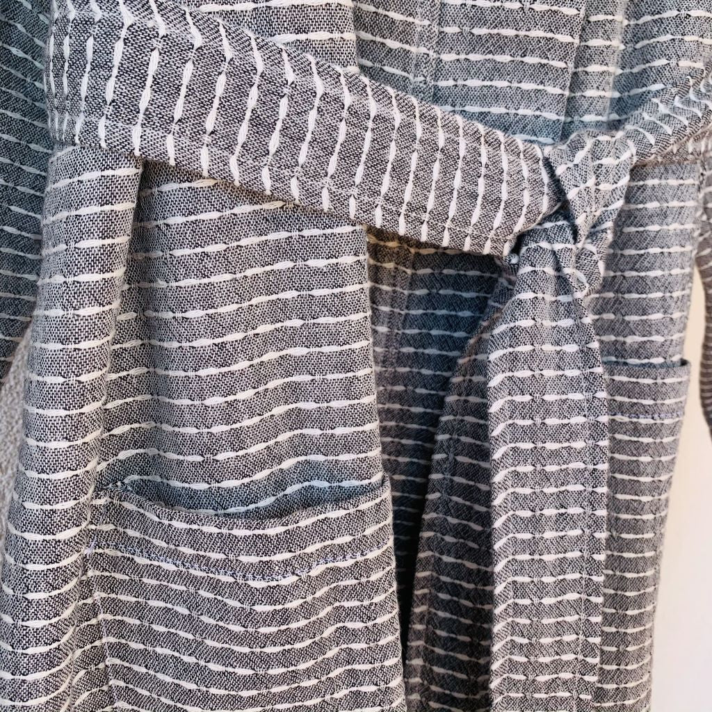A stylish checkered bathrobe made of 100% combed cotton on the outside and lined with terry cotton on the inside. The comfy, highly absorbent cotton soaks up every drop and dries quickly after a bath or shower.