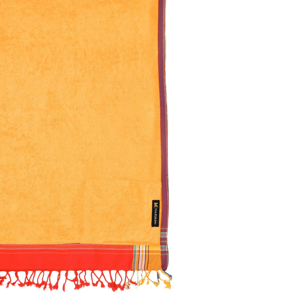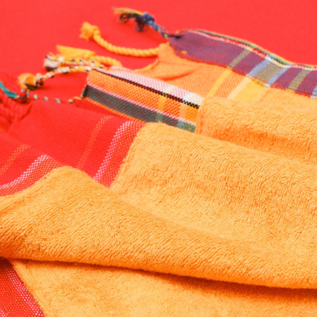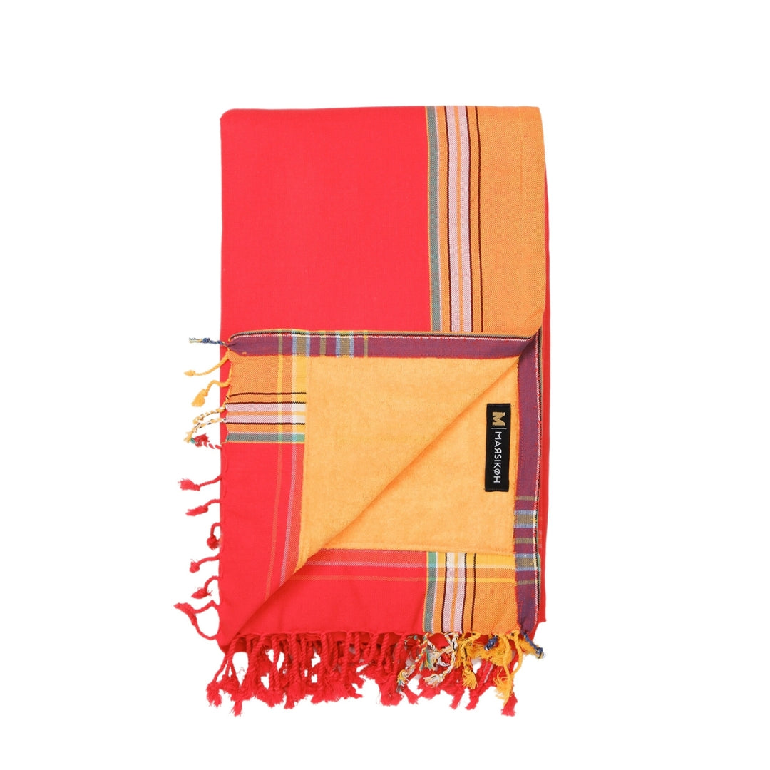 Our Pachino Kikoy is a 2-in-1 towel, ideal for lounging and practicality! One side is a traditional combed cotton fabric, and the other is terry cloth, great for drying yourself off after a nice swim or bath. The Kikoy-towel can be used as a beach towel, sarong, yoga mat, and so much more! Use the velcro pocket on one side to store your valuables. This bright cherry-coloured Kikoy is where elegance meets practicality!