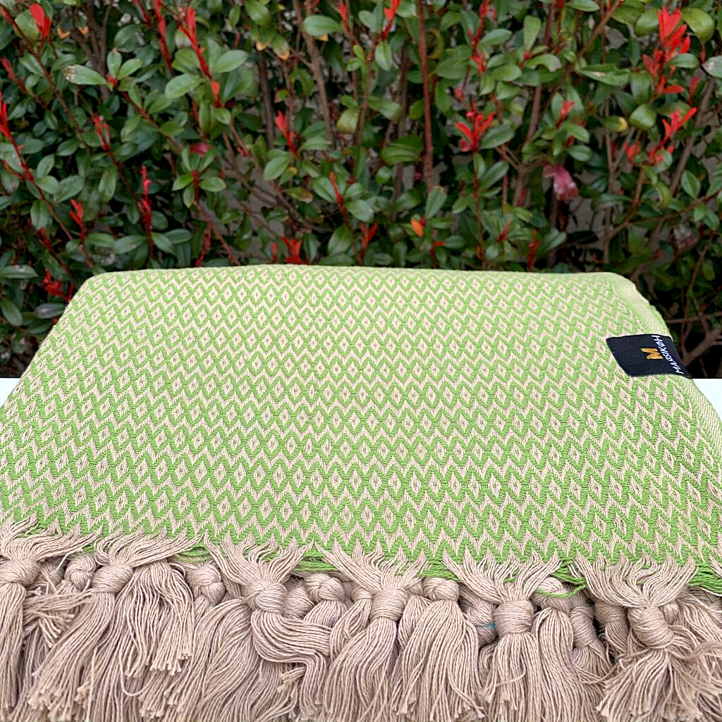A richly coloured Turkish throw blanket that belongs on any surface. The design’s diamond shapes and thick zig-zags pop out in any use: as a tablecloth, a spread for a single bed, a runner for your dresser, sofa throw to bundle up in. Simple yet refined.