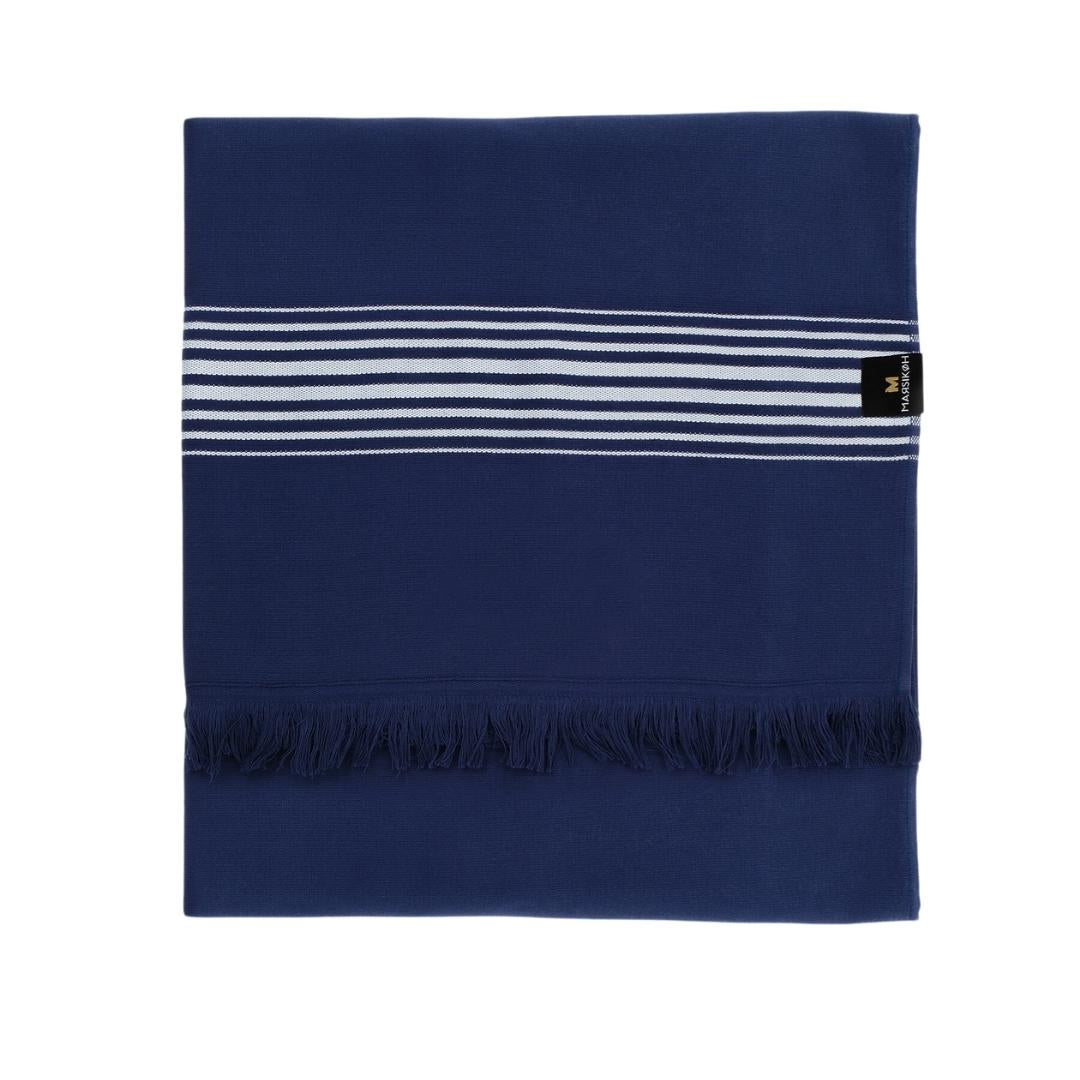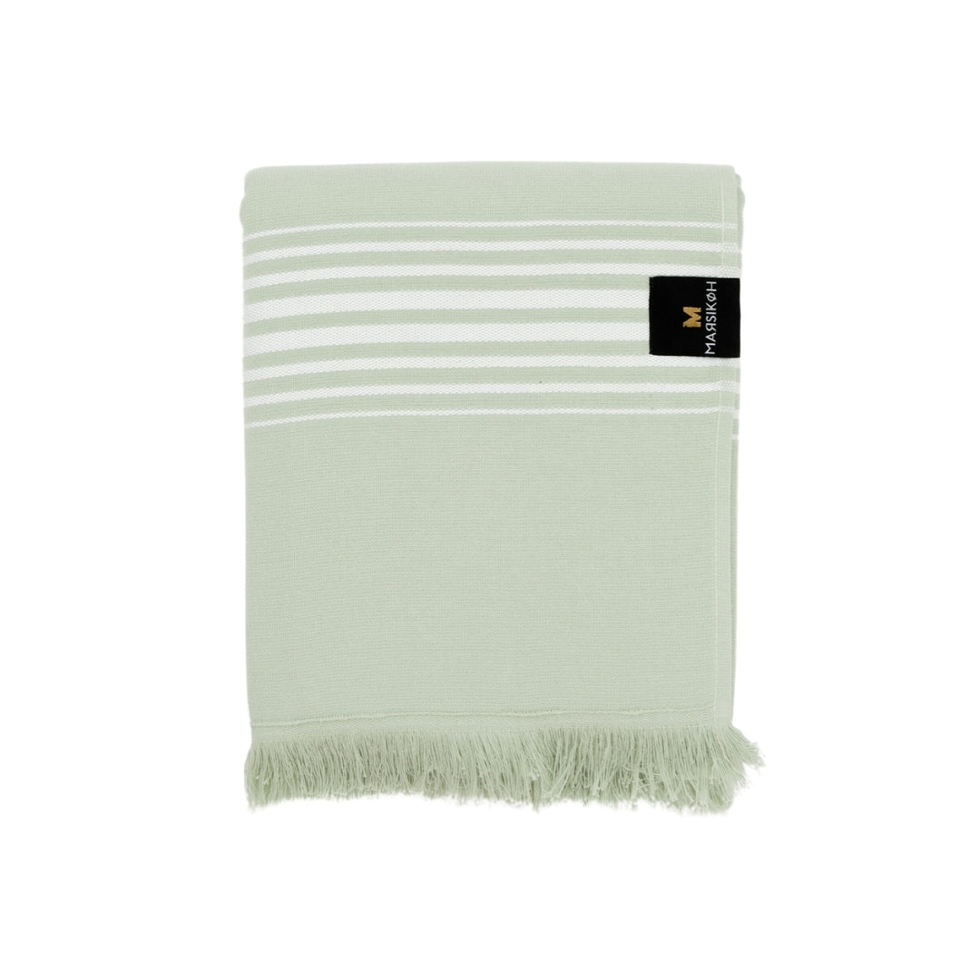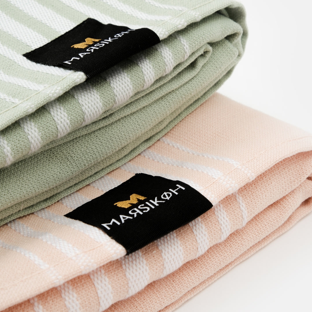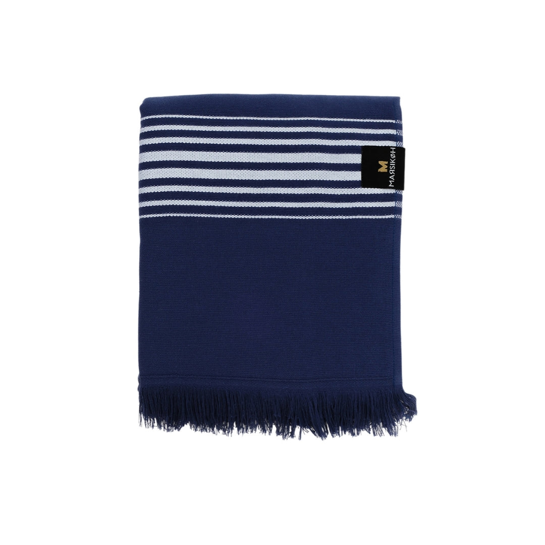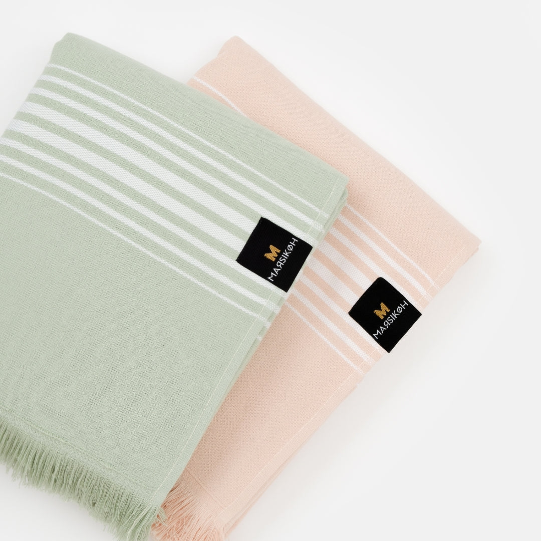 A peshtemal towel with terry fabric on one side and a plain weave on the other. Its vibrant, aquatic colours and striped design gels well with any bathroom decor. Take it with you on water-themed outings like the beach, hammam, boat trips and yacht parties. Its lightweight and compact size makes for a convenient carry-on when traveling by plane or foot.