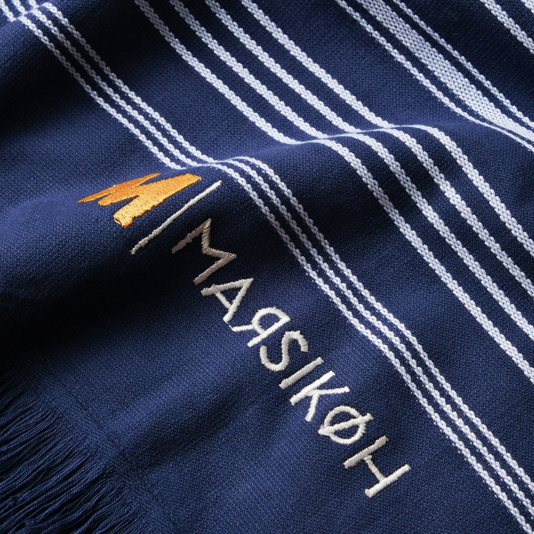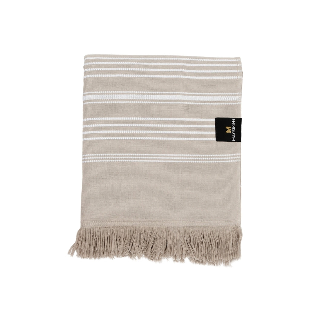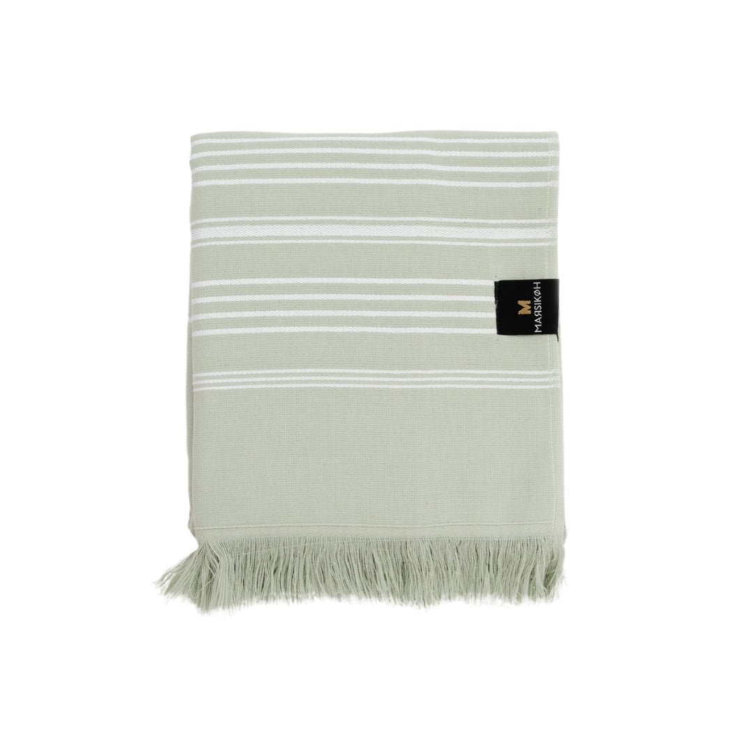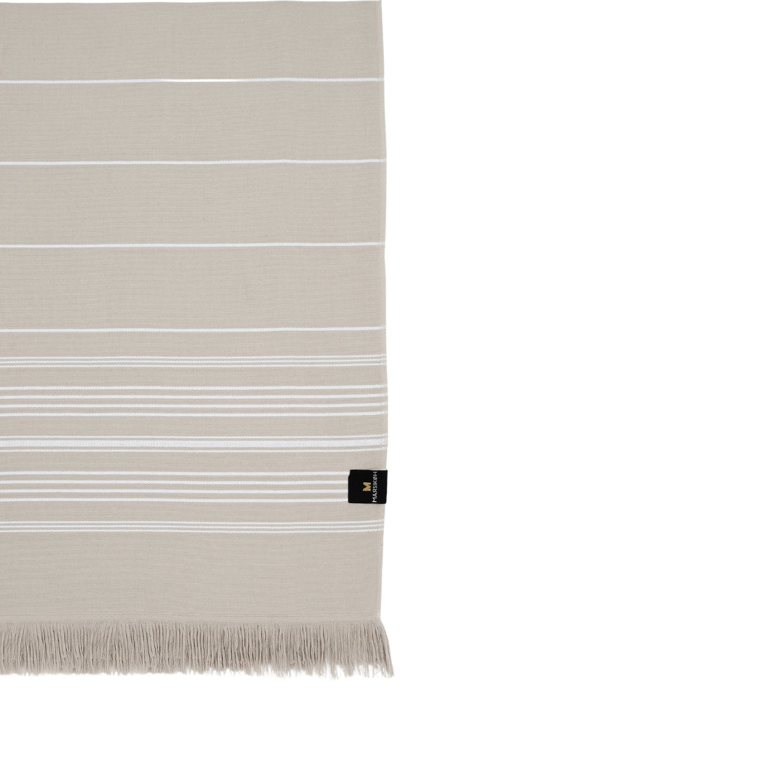 A peshtemal towel with terry fabric on one side and a plain weave on the other. Its vibrant, colours and striped design gels well with any bathroom decor. Its lightweight and compact size makes for a convenient carry-on when traveling by plane or foot.