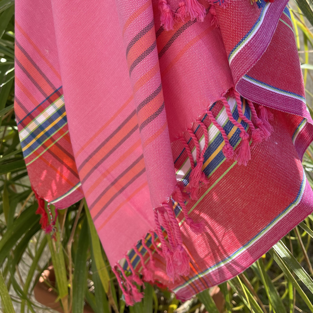 Our Sardegna Kikoy with a stylish pink colour is a must-have for relaxing at the beach. Can be used as a towel, and even a blanket for lounging.
