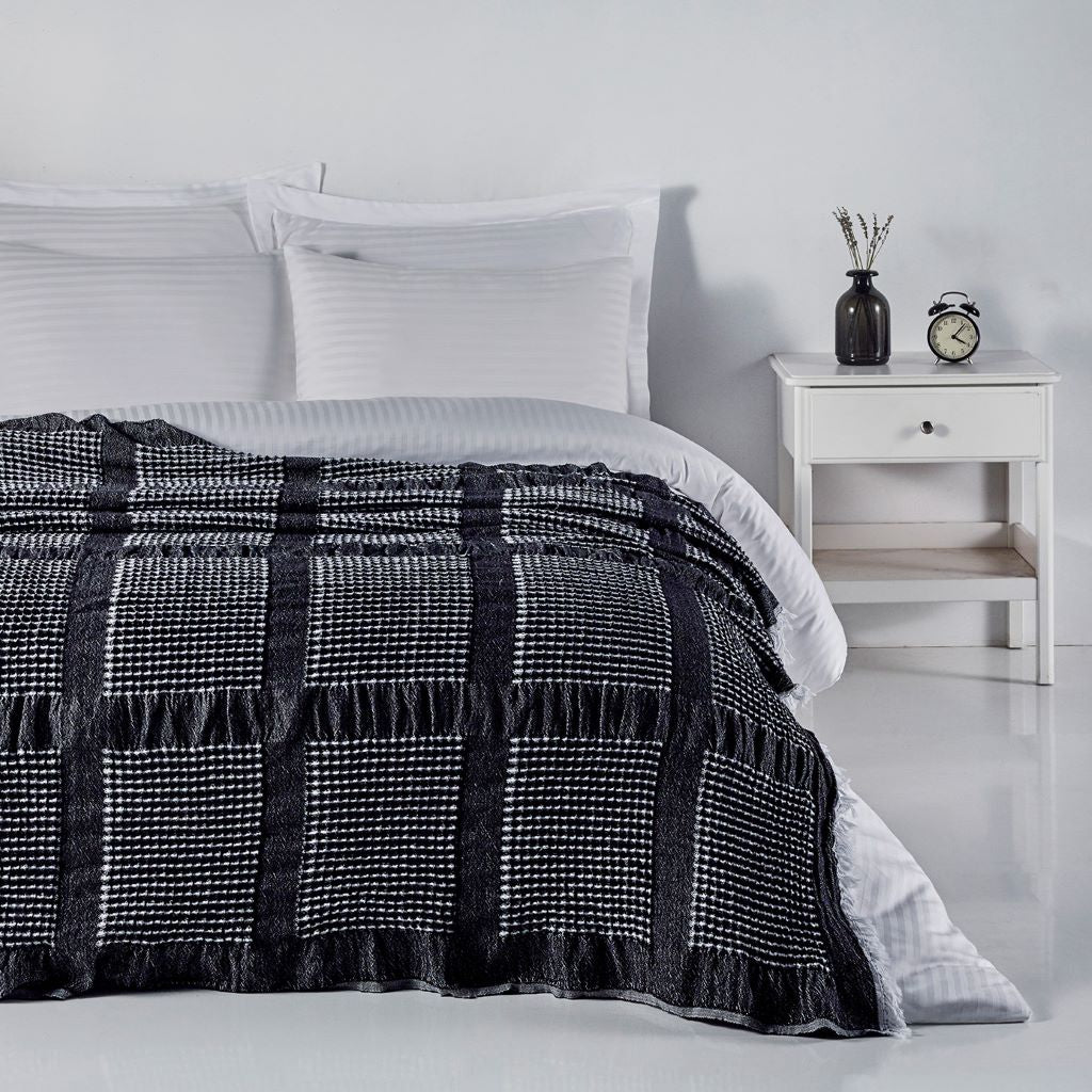 A waffle patterned bedspread with noirish vibes. This soft, all-seasons blanket adds a sophisticated touch to your bedroom decor through its balance of minimalism and eye-catching design. The blanket’s highly durable fabric means the softness and pattern’s stitching will last for years to come, no matter how many times you’ve washed it. A great gift for newlyweds.