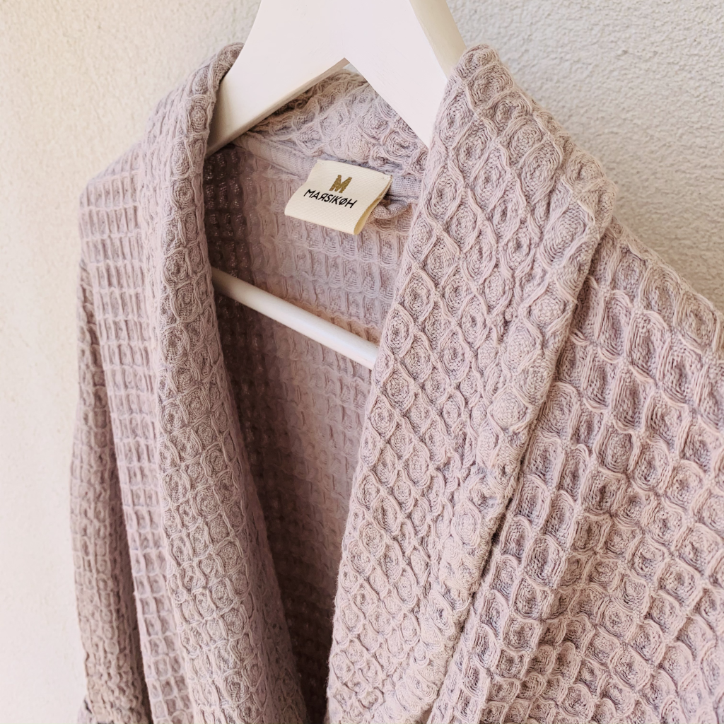 Named after the famous Dutch delicacy, Stroopwafel Bathrobe sports an elegant collar neck and honeycomb weave using stone-washed fabric. The ultra soft fabric dries fast after a shower or bath and feels so comfortable that you’ll want to keep it on as loungewear (and if you want to stay with the theme, wear it at breakfast!). This bathrobe comes in charcoal grey - sand and black - denim.