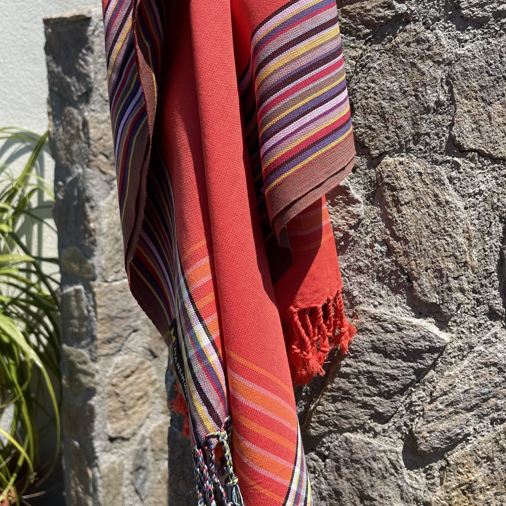 Our bright cherry-coloured Zuma Kikoy can be used as a beach towel, sarong, yoga mat, and so much more!